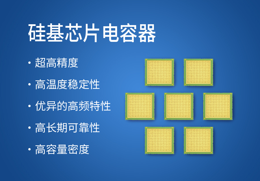 一、产品简介硅电容器(Silicon Capacitors)是一种基于半导体制造工艺,融合了MOS工艺与MEMS技术,通过微纳米级结构设计制造的电子元件,它突破了传统MLCC和SLCC的性能边界,为射频微波电路、高性能数字IC、精密模拟电路等对电子元器件性能、稳定性和集成度要求极高的应用场景提供了新的电容解决方案。硅电容按内部结构特点可分为2D硅电容器和3D硅电容器。2D硅电容器是一种以高掺杂硅作为电极和基底,通过化学气相沉积或热氧化在其表面生成介质层的电容器。3D硅电容器是在2D硅电容器基础上,为了突破二维平面限制、追求更高容量密度而发展起来的具备特殊三维结构的产品。通过利用半导体微加工技术(特别是深硅刻蚀等MEMS技术)在硅衬底上制造出三维立体结构,从而增加介质层的有效面积来显著提升单位面积内的电容量。二、产品特点与传统电容器(如MLCC、钽电容)相比,硅电容具有以下显著优点:Ø 超高精度:介质层是通过CVD或热生长形成的,厚度和成分非常均匀,电容值由面积和介质厚度决定,因此电容器的容值偏差可以做到非常小(可达±0.1%或更高)。Ø 高温度稳定性:硅电容产品采用氮化硅或二氧化硅作为介质材料,在-55℃~150℃的温度范围内,温度系数仅为±100ppm/℃。Ø 优异的高频特性:硅电容使用的介质材料和结构特点,使其具有很低的等效串联电阻(ESR)和等效串联电感(ESL),其在很宽的频率范围内保持容量的稳定性。 Ø 高长期可靠性:硅电容采用半导体薄膜工艺,可保证介质致密性与均匀性,电容器长期可靠性、批次一致性优异。Ø 高容量密度:3D硅电容通过在垂直方向上构建三维结构(如深沟槽等),极大地增加电极的有效面积,单位面积电容量较2D硅电容器可提升10~100倍,实现进一步小型化的同时保留了上述高精度、高稳定性、优异的高频性能和高稳定性的特点。三、应用领域Ø 高端通信设备:5G基站、射频功放、光模块、网络设备等中的射频电路和高速数字处理单元。Ø 汽车电子:电动汽车和智能驾驶系统,如发动机控制单元、车载信息娱乐系统、高级驾驶辅助系统(ADAS)、激光雷达(LiDAR) 等对温度和可靠性要求高的场合。Ø 工业与医疗电子:工业自动化控制系统、医疗设备(特别是植入式医疗设备),这些应用对元件的长期稳定性和可靠性有极致要求。Ø 航空航天与国防:用于航空电子系统、飞机发动机控制等对温度稳定性要求较高的电路中。四、产品结构和电极形式公司硅电容分为2D硅电容和3D硅电容,采用在二维平面结构或具有沟槽结构的三维立体结构上沉积介质材料,并覆盖金电极作为引出端,形成可金丝键合的微组装用硅电容或表面贴装(SMT)用硅电容。1、硅电容器内部结构 2、2D硅电容产品电极形式 3、3D硅电容产品电极形式五、产品典型容值范围1、2D硅电容典型容值范围产品系列尺寸(mm)容量(pF)122334710022047010001500D系列0.254*0.2540.508*0.5080.762*0.7621.016*1.0161.270*1.270G系列0.254*0.7620.508*1.2700.762*2.0321.016*2.0321.270*2.0322、3D硅电容典型容值范围产品系列尺寸(mm)容量(pF)100022004700100002200047000100000D系列0.254*0.2540.508*0.5080.762*0.7621.016*1.0161.270*1.270H系列0.400*0.2000.600*0.3001.000*0.5001.600*0.8002.000*1.250六、质量保证基于硅电容产品特点,公司结合多年电容器开发、供货经验,制定了一整套质量保证方案。包括其介质层的质量评估、产品一致性评估、产品测试分选、寿命评估等。在生产、供货过程中,主要开展的检验项目如下:检验阶段检验项目主要项目产品开发阶段基础性能评估容量、损耗角正切、耐压等结构分析膜层结构、膜层致密性等可靠性评估温度冲击、稳态湿热、耐焊接热、静电放电、高温寿命生产过程结构分析膜层结构电性能测试分选容量、损耗角正切、耐压等外观测试分选表面缺陷,边缘缺陷等七、产品安装方式硅电容适配打线和SMT贴片安装工艺,可与各类半导体器件良好兼容,安装示意图如下。八、小结硅电容器并非要取代传统的MLCC,而是作为一种高性能、高稳定性电容器的补充技术,在特定的高端应用领域,尤其是需要与半导体芯片集成的场景中,发挥着重要作用。公司深耕电容领域数十年,对电容产品有着深入的理解,公司拥有完善的电容制造以及可靠性检验设备和资质。公司基于对介电材料的认识和电容器应用的积累,开发了系列化的硅电容产品,为客户在高频、高稳定性电路领域应用提供更优的产品解决方案。